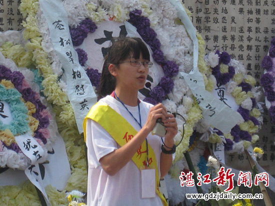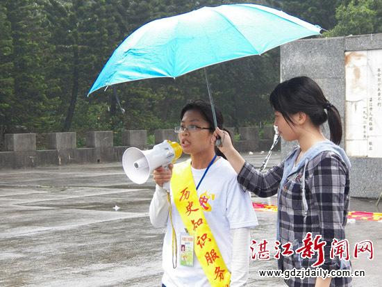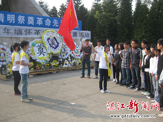据悉,服务队每年都会在烈士陵园为前去扫墓的市民和师生无偿讲解湛江的革命历史,讲解内容分为烈士碑,乐民起义,革命领袖黄学增三大部分。该队的队员们用满腔的热情服务群众,让前来扫墓的群众更清楚地了解大革命时期发生在湛江的革命历史故事,让年轻一代铭记先烈的英雄事迹,学习先烈的优秀品质,努力学习,奋发图强,,用实际行动去创造祖国的美好未来。