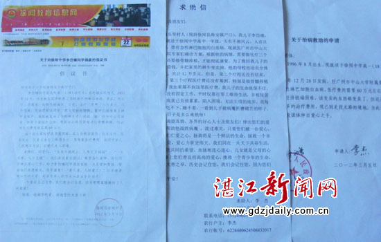 湛江新闻网讯:16岁,是花一样的年华,是无忧无虑纯洁美好的花季。然而,正当花季就读徐闻县徐闻中学高一(18)班的李岱臻同学却突遭白血病的侵袭而危在旦夕,其父母为医好儿子的病,无心打零工维持生活,变卖了家当,四处求助,仅仅向当地政府部门和一些企事业单位写求助信就达10多封/次,向亲友借钱共达10万多元,负债累累,生活陷入了困境……