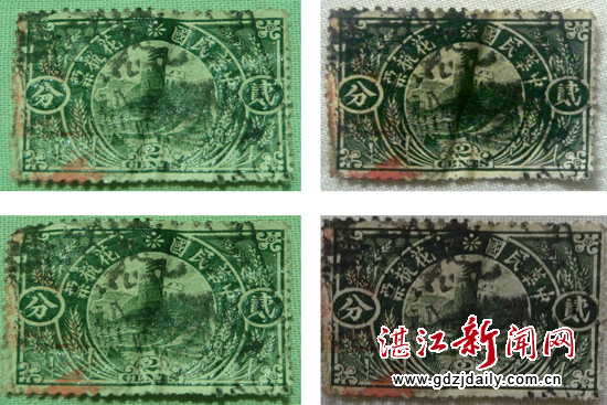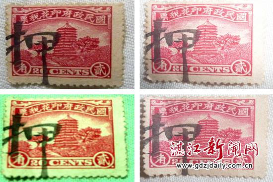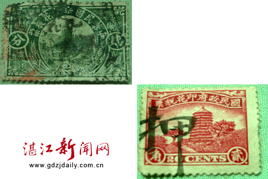 湛江新闻网讯:近日,笔者在徐闻谭家村发现十几枚民国时期的印花税票,十几枚印花税票中有面额2角的,也有2分的,边缘齿孔非常清晰,大小与普通邮票相当。