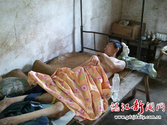 几根铁棍架起床架子,几片粗糙的木麻黄板铺上去,就是梁长锦的床。梁长锦已在这张床上躺了近八年,躺了近三千个日日和夜夜。