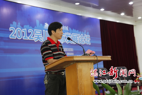 湛江新闻网记者9点49分快报:由吴川市人民政府和湛江日报社联合举办的2012吴川城市发展论坛正在吴川市地税局举行,本次论坛将会持续近两个小时,论坛会邀请了该市领导、专家学者来到现场,就吴川城市规划和管理、产业发展这两大论题进行主题演讲。同时,通过我市党政领导、相关职能部门、各位专家学者与市民、网民现场交流互动, 广开言路,广集民智,为吴川今后的发展把脉开方,推动吴川城市建设和产业发展。