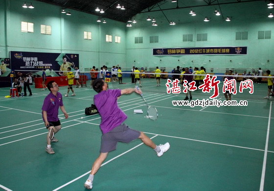 湛江新闻网讯:“羽林争霸”2012红牛城市羽毛球赛广东赛区湛江站吴川分站比赛于4月22日在吴川市江心岛羽毛球馆举行,市民观看踊跃。