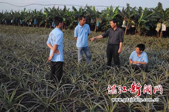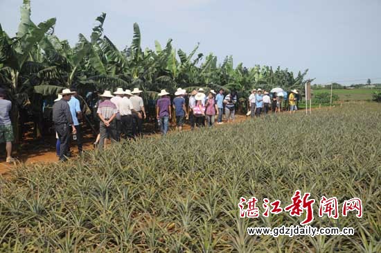 湛江新闻网讯:为贯彻落实今年中央一号文件关于农业科技创新与技术推广主题,并继续探索和稳步推进农业科技推广与服务改革,中国热带农业科学院南亚热带作物研究所与中国农业大学、天脊煤化工集团股份公司联合,深入广东省徐闻县菠萝主产区前山镇甲村,联合共建产学研一体的“科技小院”平台,经过一段时间的运行,取得了明显的成效。为了及时总结热带作物高产高效的技术与示范推广模式,4月14日,南亚所与中国农大等共建单位组织2012科技推广年“徐闻基地”产学研融合交流会,让专家和农技人员深入菠萝生产一线,识农情,做服务。