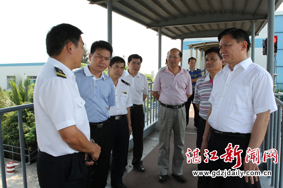 湛江新闻网讯:“五一”小长假将至,琼州海峡将迎来客流、物流、车流的海路运输高峰期,为确保“五一”小长假期间交通运输生产安全,4月25日,徐闻人民政府代县长梁权财、县委副书记符贤带领该县交通局、国资局等相关部门负责人,到徐闻县北港码头、海安新港、海安港等处检查指导 “五一”期间安全生产工作。