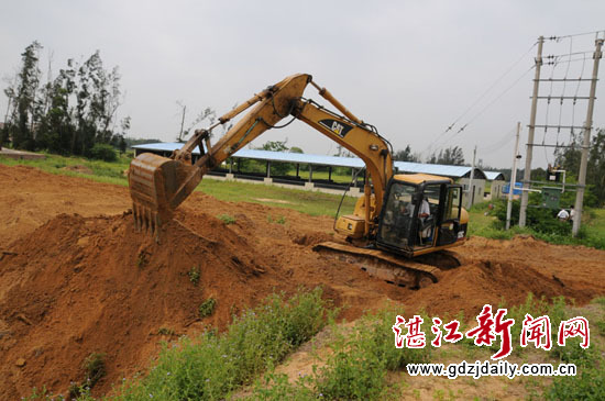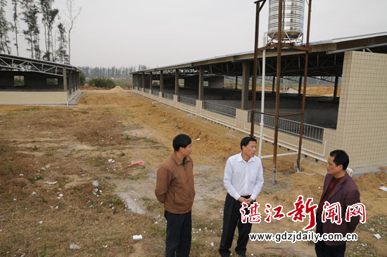 湛江新闻网讯:4月26日,深圳市交通运输委帮扶建造的麦屋养猪场内机声隆隆,挖掘机正在这里挖土,再投入300万元建造和完善该养猪场的二期工程正式动工。深圳市交通运输委驻塘尾街道“双到”工作组负责人杨康明带领工作组人员,会同塘尾街道党工委书记张阁良、街道办副主任李泉,与吴川市绿色安保猪业有限公司总经理汤守勤到现场办公,解决相关问题。
