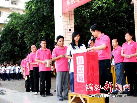 虽然5月的夏日,暑气熏蒸。然而,在徐闻二中校园内却仍吹拂着阵阵的清爽和风,全校师生站了出来,用爱心去拯救李健老师生命。为让这棵芳草不致因骄阳而枯萎,徐闻二中校园上演了一幕感人的场面。