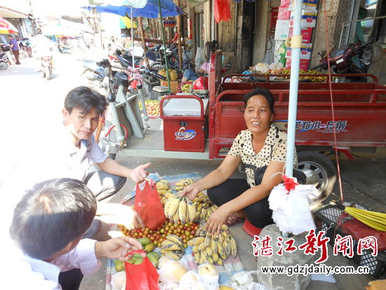 杨国莲用这辆三轮电动车干起了买卖水果生意,在塘尾街道新市场摆地摊,每天早出晚归利用三轮电动车载运水果。