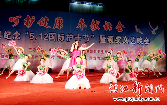 湛江新闻网讯:五月的阳光温暖明媚,五月的鲜花灿烂娇艳。在“5.12”国际护士节到来之际,徐闻县委宣传部、县卫生局联合举办的“庆祝5•12国际护士节暨颁奖文艺晚会”于5月11日晚在徐闻文化广场隆重举行。戴吴金荣、冯德联、陈俊英、陈光力、沈耀等县领导同2万多群众观看了文艺晚会。