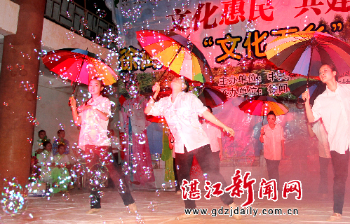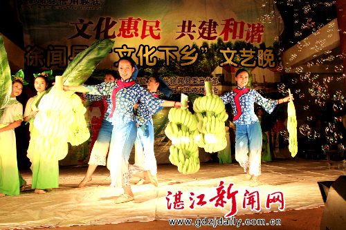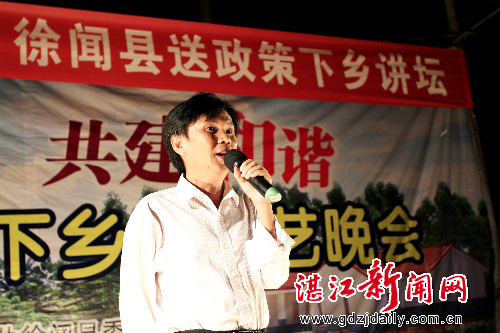湛江新闻网讯:5月12至13日,徐闻县委宣传部为了大力宣传“惠民强农”相关政策,采取人民群众喜闻乐见的方式,组织文艺表演队到下桥镇拔园村、迈陈镇谈才村等乡村开展送政策下乡文艺晚会活动。