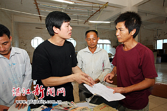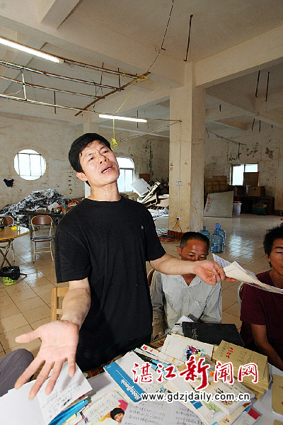 5月16日,记者来到海安镇,在采访时见到几位农民工又来向谭某敢要工钱。谭某敢说:“当初是我们作为代表召集农民工来干活的,如今农民工找我要钱,但工程老板没给我们工钱,我们没法兑现给农民工。”