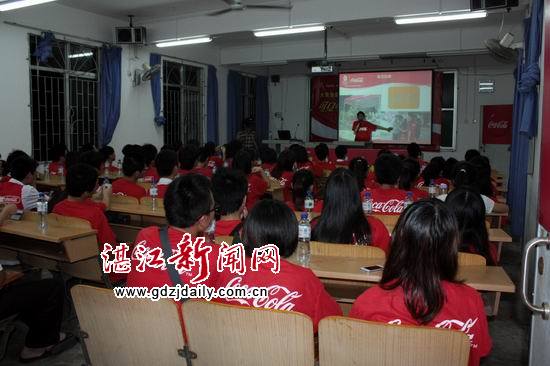 2012年5月25日晚上19:30,可口可乐校园创业实战训练营湛江地区第一期专项培训在广东海洋大学职业技术学院火热开讲。本期培训的主题为“我能为你做些什么?”现场,来自湛江师范学院、广东海洋大学、广东海洋大学职业技术学院的近100名营员参与了本次讲座。