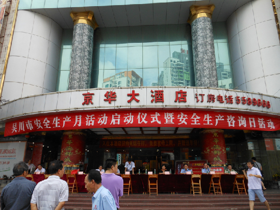 湛江新闻网讯:为宣传安全生产法规知识,提高广大人民群众安全意识,推动各项安全生产工作顺利开展,8日上午,吴川市委宣传部、安监局、公安局、总工会、妇联、团委等有关部门,联合在该市市区京华大酒店门前举行了安全生产法律法规咨询和安全生产应急救援演练周启动仪式,现场接受市民有关安全生产知识咨询,向市民发放有关安全生产宣传资料和刊物等。