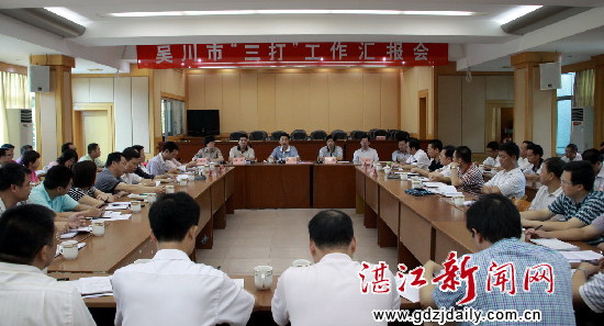 会议传达贯彻省委巡视组有关指示精神,听取前阶段“三打”工作汇报,指出自“三打”工作开展以来,吴川市广泛积极宣传,开展了一系列宣传教育活动,大力打击,查办一批“三打”案件,专项整治,集中整治几个突出问题,整体联动,形成了职能部门上下联动的工作格局,“三打”工作打出了效果,打出了声威,取得阶段性成效。