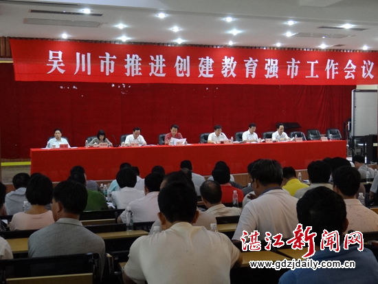 湛江新闻网讯:13日,吴川市召开推进创建教育强市工作会议。会议提出:不按时完成任务的镇(街)党政负责人及有关职能部门负责人将被“一票否决”。吴川市委书记曹兴,市长江毅,湛江市教育局副局长林涛等领导出席会议,各镇(街)党政主要负责人,各村(居)委书记、主任,以及各中小学校长500多人参加会议。