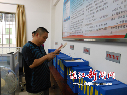 刘燊局长在梅菉街道人口计生办了解有关档案资料