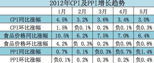 国家统计局上月公布的数据显示,2012年5月份,全国居民消费价格总水平同比上涨3%,低于3.2%的市场预期,创下自2010年6月之后的新低。