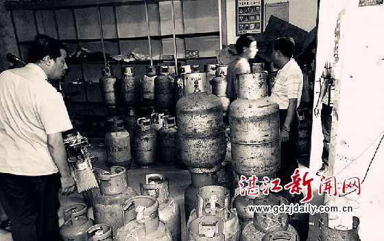 11日,吴川市住建、质监、工商、安监、公安等部门联合执法,端掉一非法经营罐装液化石油气窝点,现场扣押一批气瓶,以及瓶与瓶之间过气器具等,消除了一大安全隐患。
