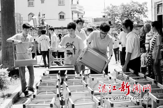 为了解决学校硬件落后的问题,油服油技湛江基地还给高辣小学的同学们送去崭新的桌椅和体育用品等。