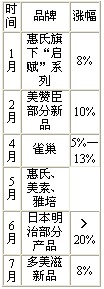 今年以来洋奶粉提价一览表