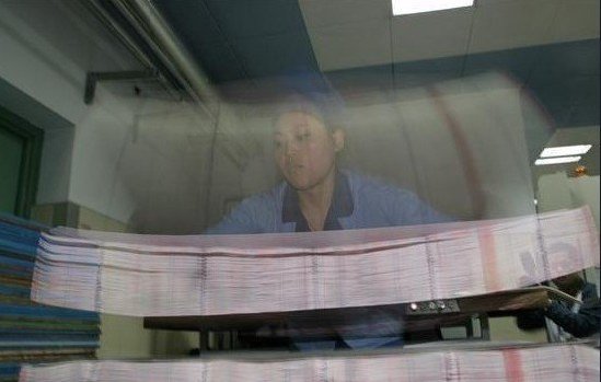 在印刷前,工作人员要对纸张进行逐张质量检查,因为水印有方向问题,所以每张纸必须按照水印图案方向摞好,并且用打孔机在边上打孔定位,不能出错。
