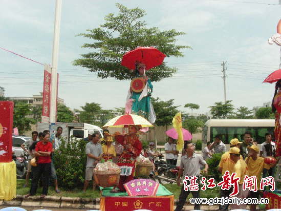 享誉国内外的吴川梅岭民间艺术团在金源饼业有限公司新址及吴川市区表演了醒狮艺术及金源月饼、嫦娥奔月、八仙赏月、后羿摘月等4台飘色,使吴川市民和来宾近距离观看到精彩的吴川飘色艺术。