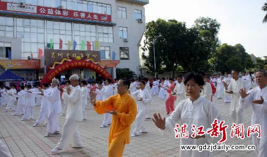 吴川市近千市民在江心岛小广场举行体育表演活动