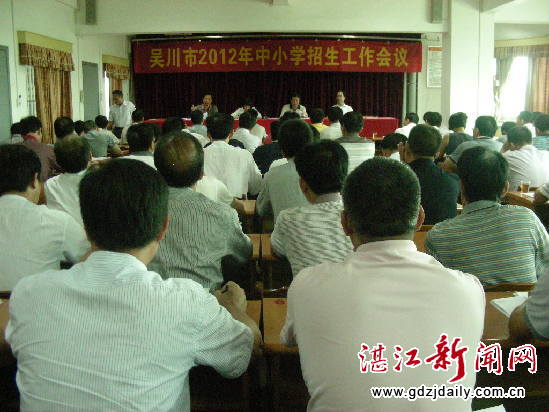 湛江新闻网讯:10日上午,吴川市召开2012年全市中小学招生工作会议,部署初中和小学招生工作。吴川市委常委招励出席会议并讲话,吴川市副市长陈冰湖主持会议。