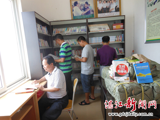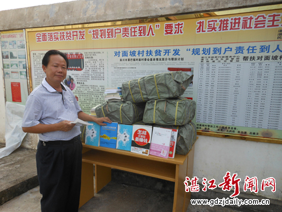 湛江新闻网讯:日前,湛江市行政服务中心挂职吴川市覃巴镇对面坡村委会党支部副书记杨敬毅捐资1.1万多元,帮助该村农家书屋购买农业生产、水产养殖等有关劳动致富知识书籍,给贫困户智力扶贫,加快全村脱贫致富步伐,受到当地群众好评。