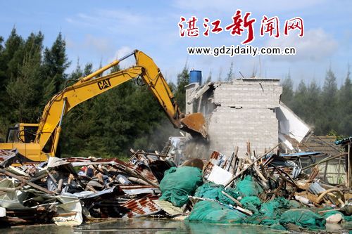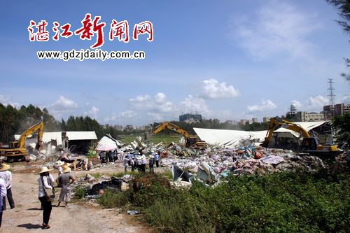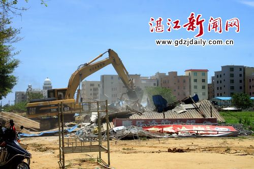 湛江新闻网讯:8月21日至22日,由吴川市委常委、常务副市长全可文,市人大常委会副主任陈亚汗,副市长陈天耀、麦东生、陈国宝组织指挥市国土资源局、住建局、公用事业局、公安局、大山江街道、海滨街道办等相关单位人员组成的市清查整治违法用地违法建设工作小组,对大山江、海滨街道辖区四宗违法用地违法建设依法实施了强制清拆。