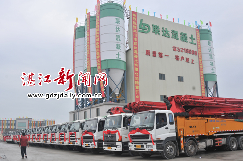 联达混凝土有限公司混凝土搅拌站是吴川市招商引资“回归工程”的重点建设项目,吴川市企业家吴上进、陈亚光、吴土德积极响应市委市政府招商引资“回归工程”的号召,投资6000多万元在大山江街道覃榜社区覃榜村建设了三级资质预拌混凝土生产与销售的专业性企业,该公司占地面积3000多平方米,现拥有南方路机180全自动预拌混凝土生产线两条,进口日产9立方米和12立方米的混凝土搅拌运输车共42辆(每辆搅拌车都配备了高科技GPS车载定位终端器),装载车3辆、三一重工混凝土输送泵4台、500千瓦发电机组一台,单储水泥3000吨,砂、石料30000立方米。