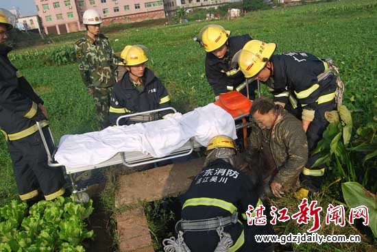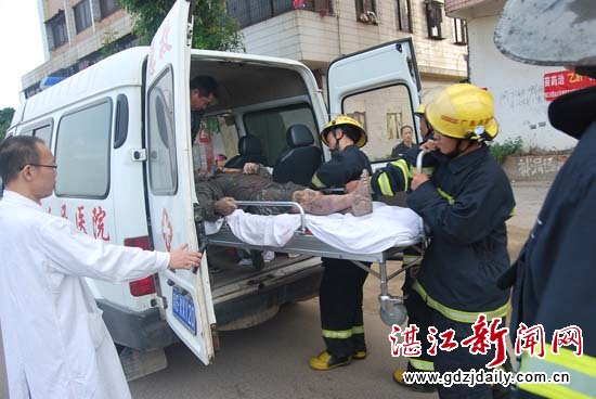 消防官兵成功将男子转交给医院