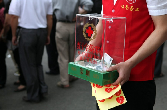 4月21日下午,深圳市红十字会与河南省深圳义工联在深圳莲花山公园正门,为雅安地震筹款,市民绕行。