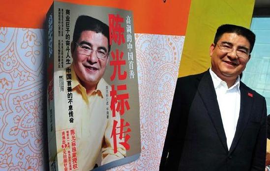 2011年4月23日,江苏南京,陈光标出席首届江苏书展举办的《高调的中国首善——陈光标传》新书发布会,为读者签名售书,并打出“每卖出一本书,将联合出版社捐出2元钱回报社会”的口号。自从媒体质疑陈光标慈善注水后,陈光标数次通过微博、视频等方式进行回应。签售一周后的央视《今日说法》节目中,陈光标再次对慈善注水做出回应,称自己的时间和精力有限,针对质疑今后不再回应,“这是最后一次回应质疑”。