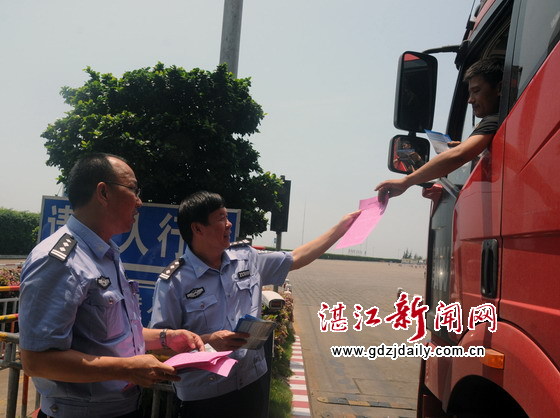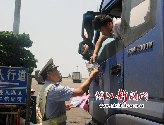 交警支队林德邦政委、高速二大队徐文新大队长来到码头向货车司机发送宣传单