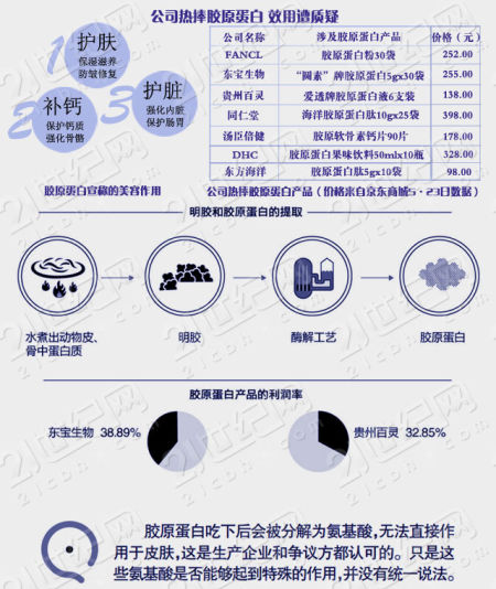 北大纵横高级医药合伙人史立臣对21世纪网分析指出,市场上胶原蛋白产品功效多为炒作。