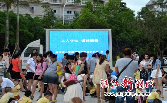 户外LED屏宣传车开进活动现场,滚动播放交通安全宣传视频。