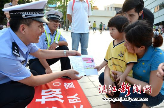 民警来到“六一”儿童节活动现场宣传文明交通与支持“创卫”工作。