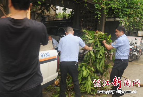 湛江新闻网讯:7月2日,受今年第6号热带风暴“温比亚”的影响,湛江市区受到正面袭击,中心附近最大风力10级,阵风12级。灾后当天,市公安局交警支队迅速组织民警投入抢险救灾工作,顶风冒雨清除路障,确保市区道路尽快恢复安全畅通。