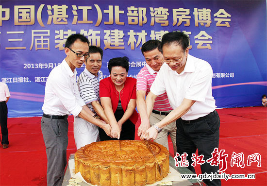 今天是中秋节,主办方特意准备了300斤重的金钩王大月饼。房博会启动仪式上,领导嘉宾共同开切中秋大月饼,与观展市民共庆中秋佳节。