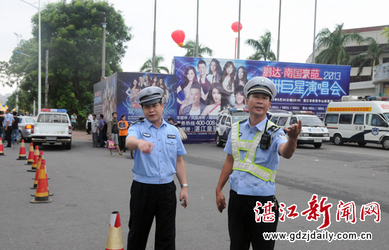 湛江新闻网讯:9月30日晚,“巨星湛江演唱会”在市体育中心隆重举办,来自海南、广西等地及省内各市、本市2万多名观众参加演唱会。为确保演唱会场馆周边道路交通安全有序,市公安局交警支队精心组织实施各项交通安保工作,支队领导、各辖区大队领导亲临现场指挥,全面协调指挥交通应急管控、车辆引导停放、交通分流管理等工作,圆满完成了大型演唱会的交通安全保障任务。
