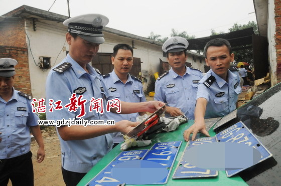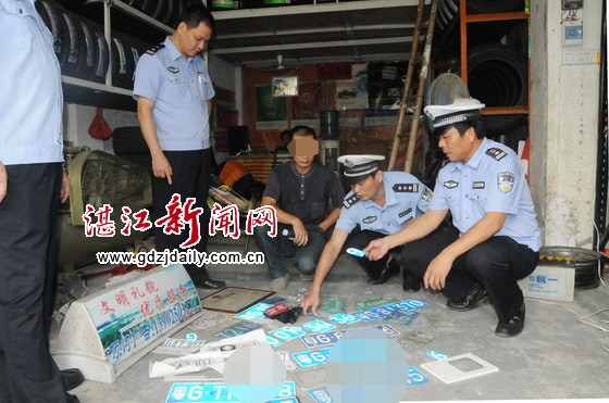 据了解,市交警部门自9月4日成功在市区城中村查获两台假(套)牌出租车以来,为从源头上摧毁假(套)牌出租车非法营运行为,交警侦查大队乘胜追击,开拓侦查新线索,深入出租车企业了解情况,经过初步摸排,目标锁定一个改拼装出租车地下窝点和一个涉嫌制造假牌窝点。市公安局杨国光、王中副局长对此高度重视,当即指示治安、交警部门紧密加强合作,一举摧毁此地下窝点。交警支队吴小明支队长、杨东光副支队长与治安支队梁虎泉支队长、吴仕新副支队长迅速召集麻章治安大队、交警侦查大队有关领导召开专题会议,分析研究案情,马上采取行动。