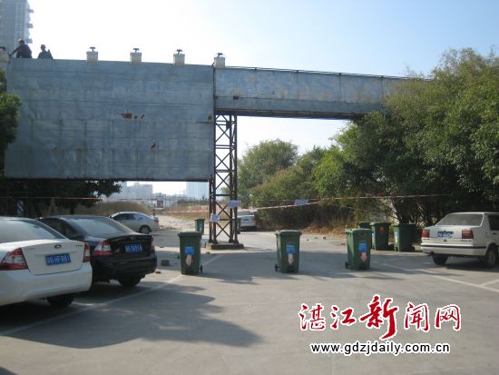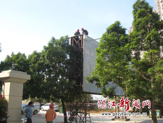 11月3日,笔者在海丰路与百金路交汇处南向路段看到,原来由开发商搭建的一处钢架广告牌楼已经拉起警戒标志,正进行拆卸。