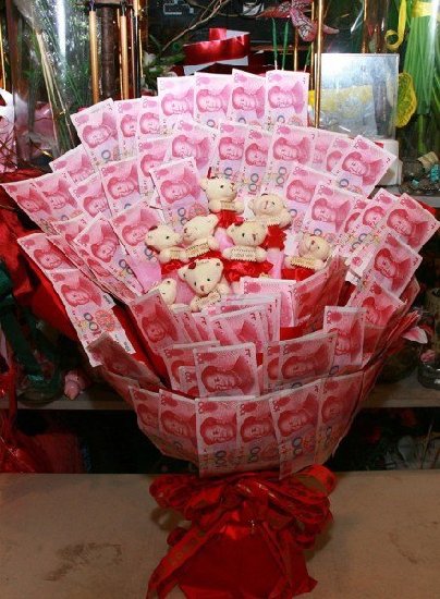 11月24日,江苏扬州,制作好的“人民币花束”。