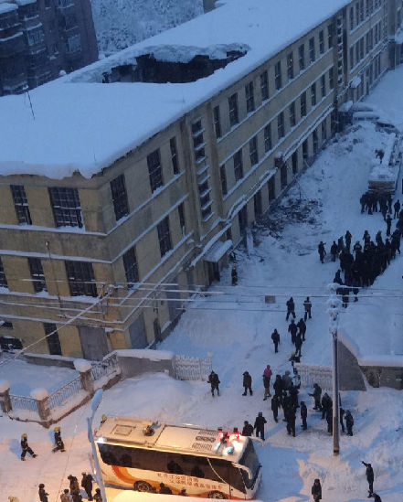 2013年11月25日,记者从黑龙江省牡丹江市应急办获悉,25日13时10分,牡丹江市一座三层厂房发生楼顶坍塌造成9人被困,目前9人全部遇难,尸体均已被搜救出来。据了解,从本月17日起,牡丹江市连续遭遇两次暴雪天气,坍塌事故发生时,降雪仍在持续。事故发生后,牡丹江官方组织了紧急救援,截至今晚23时30分,9名遇难者尸体被全部搜救出来,事故原因还在进一步调查。