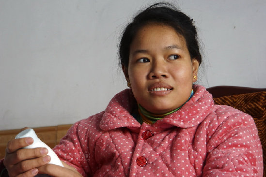 刚生过小孩的柬埔寨新娘阮淑兰见到生人进门很拘束。她说“很想家”。