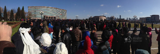11月27日上午,黄岛爆燃事故附近居民区居民到黄岛区政府大楼前表达诉求,居民认为现住所危险系数太高,希望搬离事故发生地。