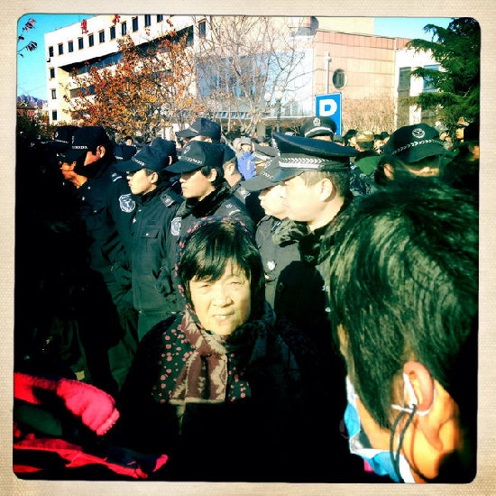 11月27日上午,黄岛爆燃事故附近居民区居民到黄岛区政府大楼前表达诉求,居民认为现住所危险系数太高,希望搬离事故发生地。