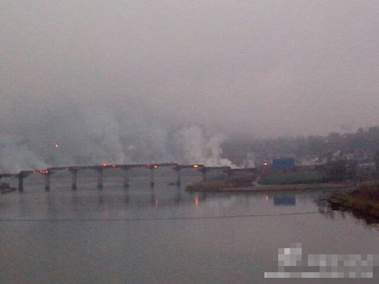 11月27日晚,有亚洲第一之称的重庆黔江濯水古镇风雨廊桥发生火灾被烧毁。风雨廊桥横跨于阿蓬江上,长303米、宽5米。目前,消防部门正在对火灾原因进行调查。网友 摄