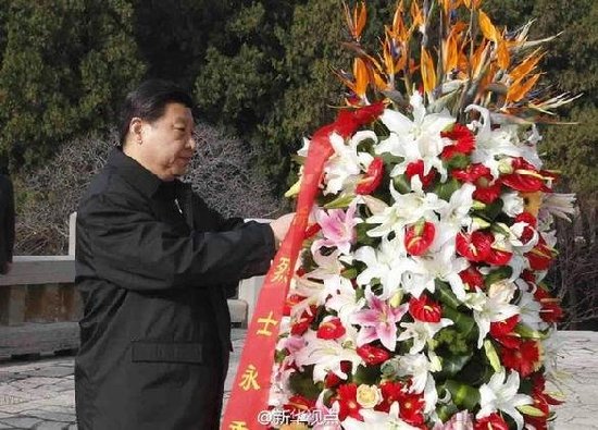25日上午,习近平来到华东革命烈士陵园,向革命烈士纪念塔敬献花篮。