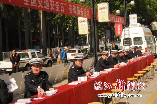 湛江新闻网讯:为倡导全社会共同关注交通安全,大力提升全民交通安全意识,按照公安部交管局、省交警总队的部署和要求,12月2日上午,市公安局交警支队在赤坎世贸大厦门前举办了以“摒弃交通陋习,安全文明出行”为主题的宣传咨询活动,形式多样地开展交通安全宣传,进一步营造浓厚的交通安全宣传教育氛围,提高市民的交通法治意识、交通安全意识和交通文明意识,活动内容丰富,宣传效果较好。